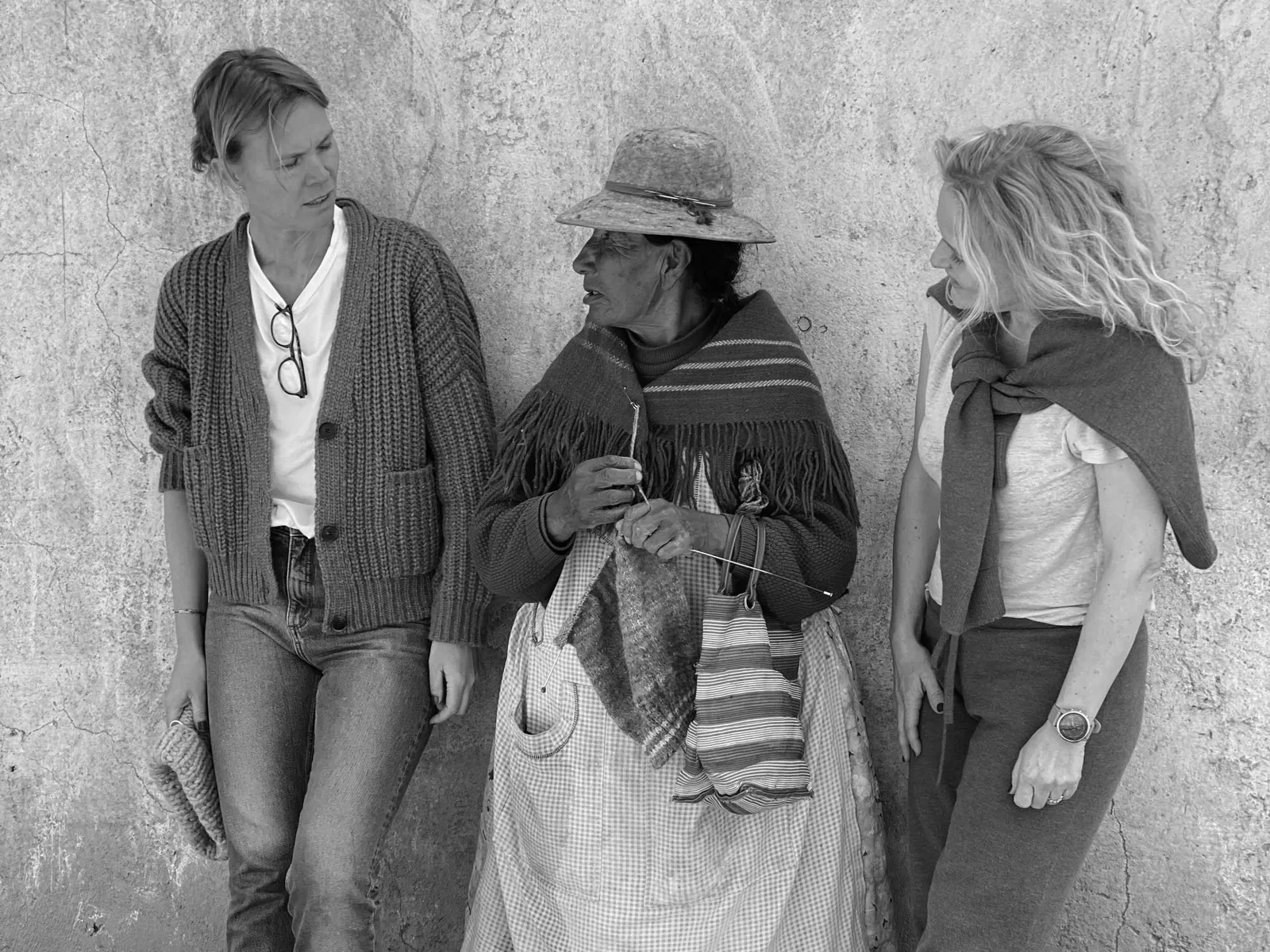 Aiayu has been building on that same logic since 2005. Their knitwear is made by artisans in Bolivia, Nepal, India, and Europe — and that fact is not tucked into a sustainability page. It is signed into the garment itself. Each hand-knitted piece carries the initials of the person who made it, stitched in at the hem. Not a hang tag. Not a QR code linking to a factory profile. A name, in the fabric, permanent.
